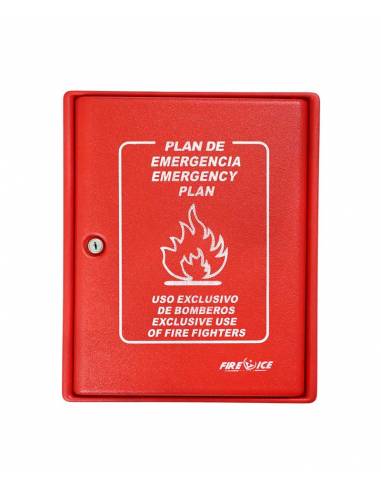 Armario especializado para almacenamiento y organizaci贸n de planes de emergencia. Construido con termopl谩stico resistente para uso en exteriores. Incluye cerradura con bomb铆n para mayor seguridad. Dimensiones: 360 x 300 x 50 mm (alto x ancho x fondo).