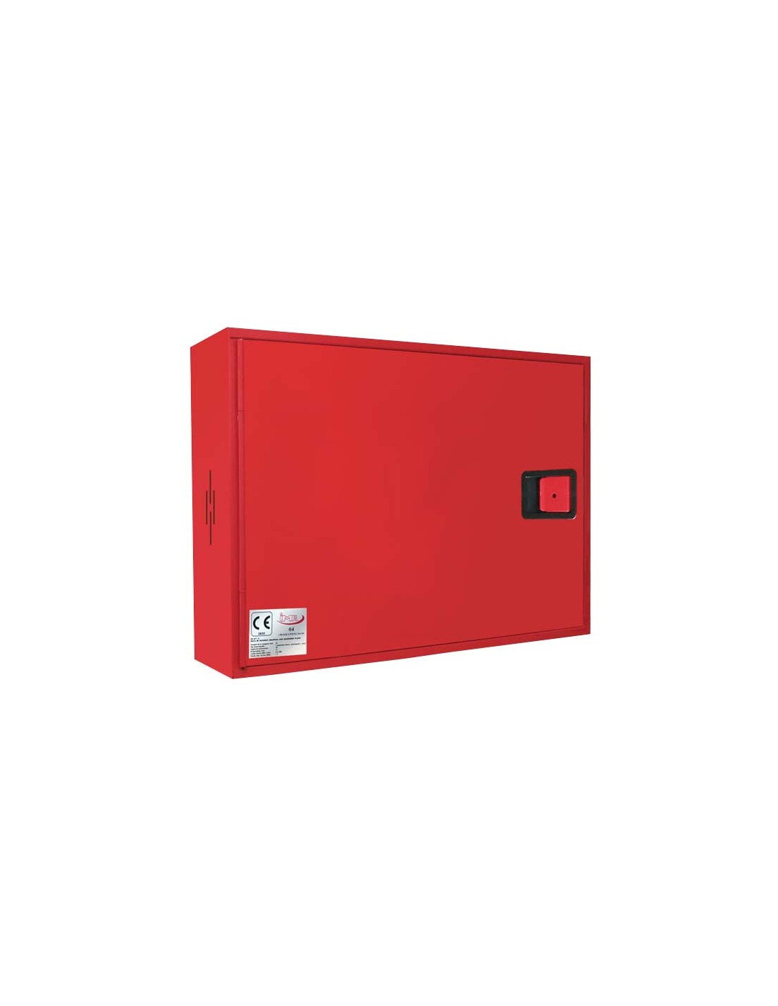 Boca de incendio equipada (BIE) de 45 mm, diseñada para sistemas de Protección Contra Incendios (PCI) en edificios y espacios con altas exigencias de seguridad por normativa. Este equipo certificado bajo la Norma UNE-EN-671.1 ofrece la máxima fiabilidad y durabilidad. Incluye una manguera plana de 45 mm de diámetro y 20 metros de longitud, acompañada de una lanza variomatic con tres efectos. El armario, fabricado en color rojo RAL-3000, cuenta con puerta ciega y un diseño compacto que mide 45 cm x 13 cm x 60 cm (alto x fondo x ancho). Además, incluye válvula, manómetro, racores y devanadera metálica. Instalación no incluida. Plazo de fabricación: 12 a 14 días hábiles.