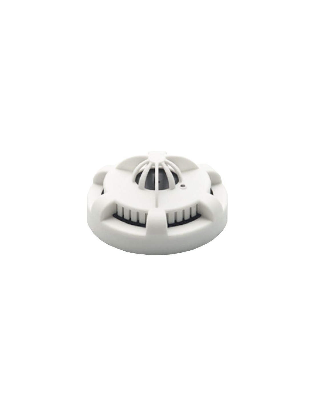 Detector de incendio de bajo consumo diseñado para detectar variaciones de temperatura en tiempo real. Su sensor estático responde a temperaturas fijas de hasta 57 ºC y cuenta con un indicador LED visible a 360°. Tiene un diámetro de 100 mm y una altura de 36 mm.