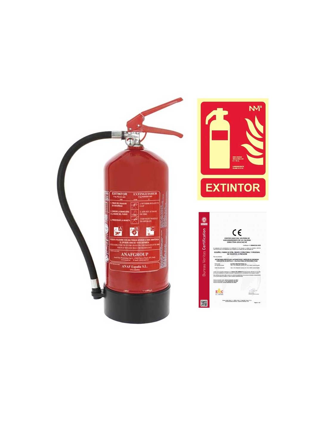 Extintor 6 kg + Señal Fotoluminiscente + Certificado Oficial