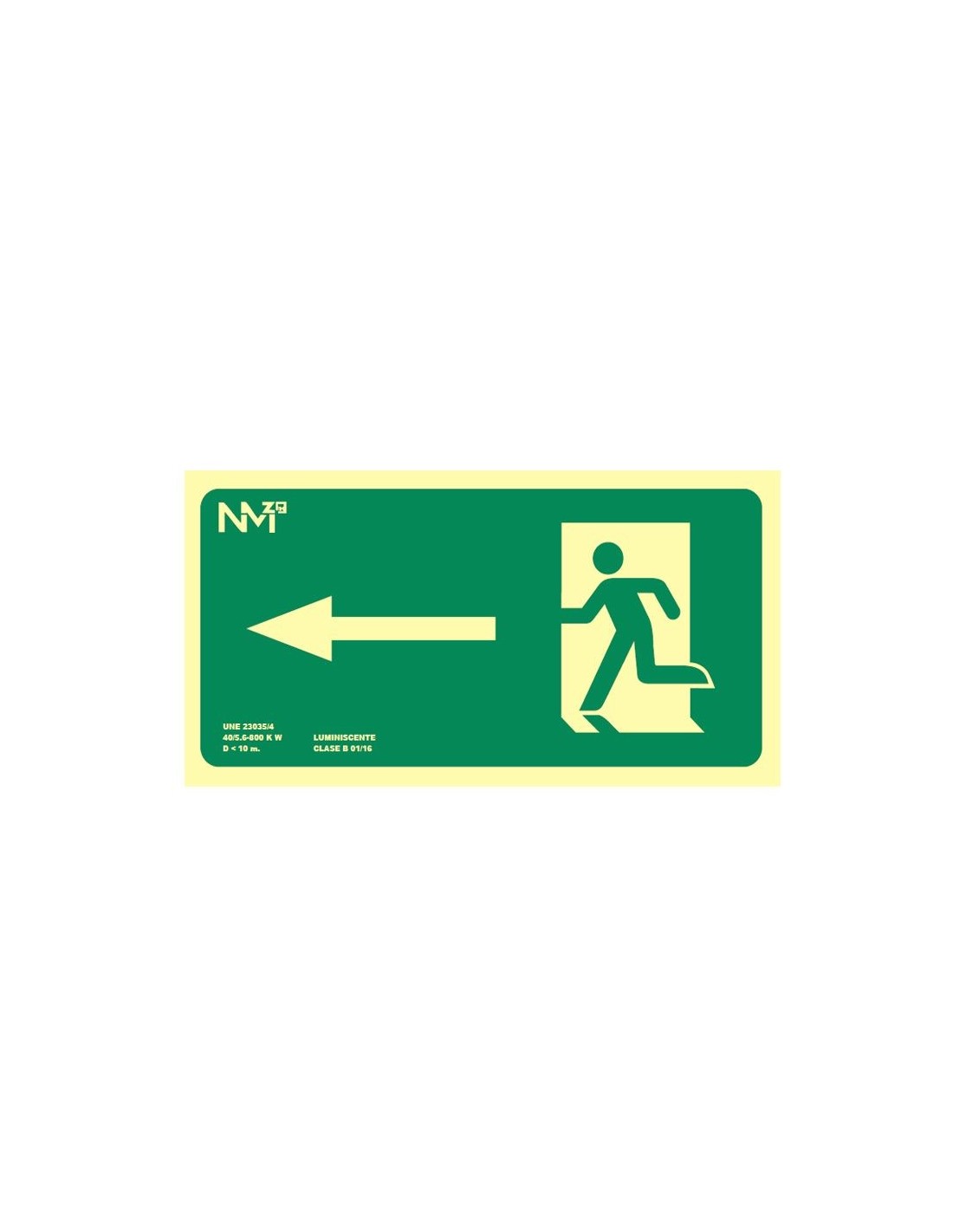 Características técnicas de la señal evacuación izquierda clase B PREMIUM