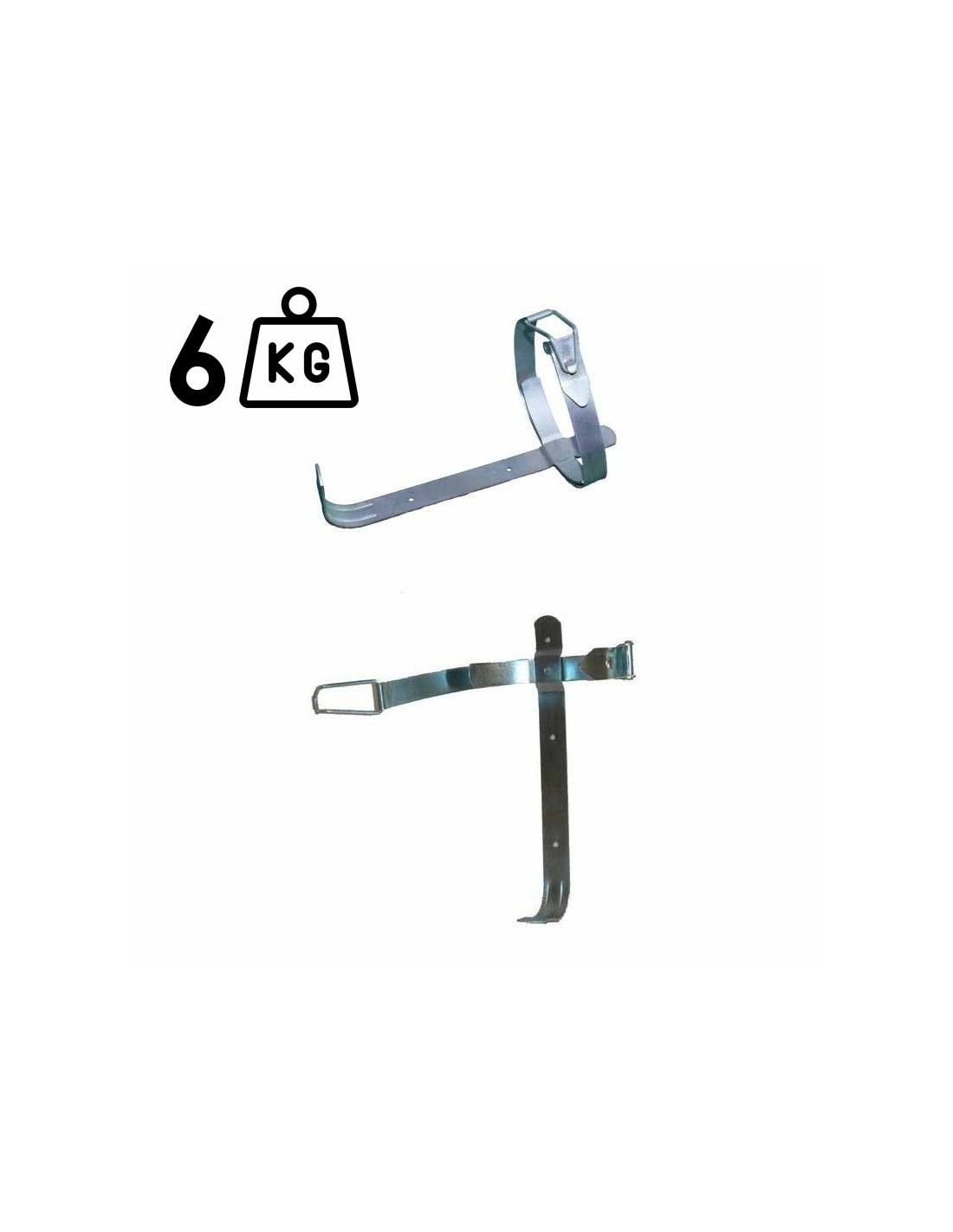 Soporte metálico de alta resistencia con un fleje diseñado específicamente para anclar extintor de 6 kg. Solución fiable para la fijación de equipos de extinción de incendios.